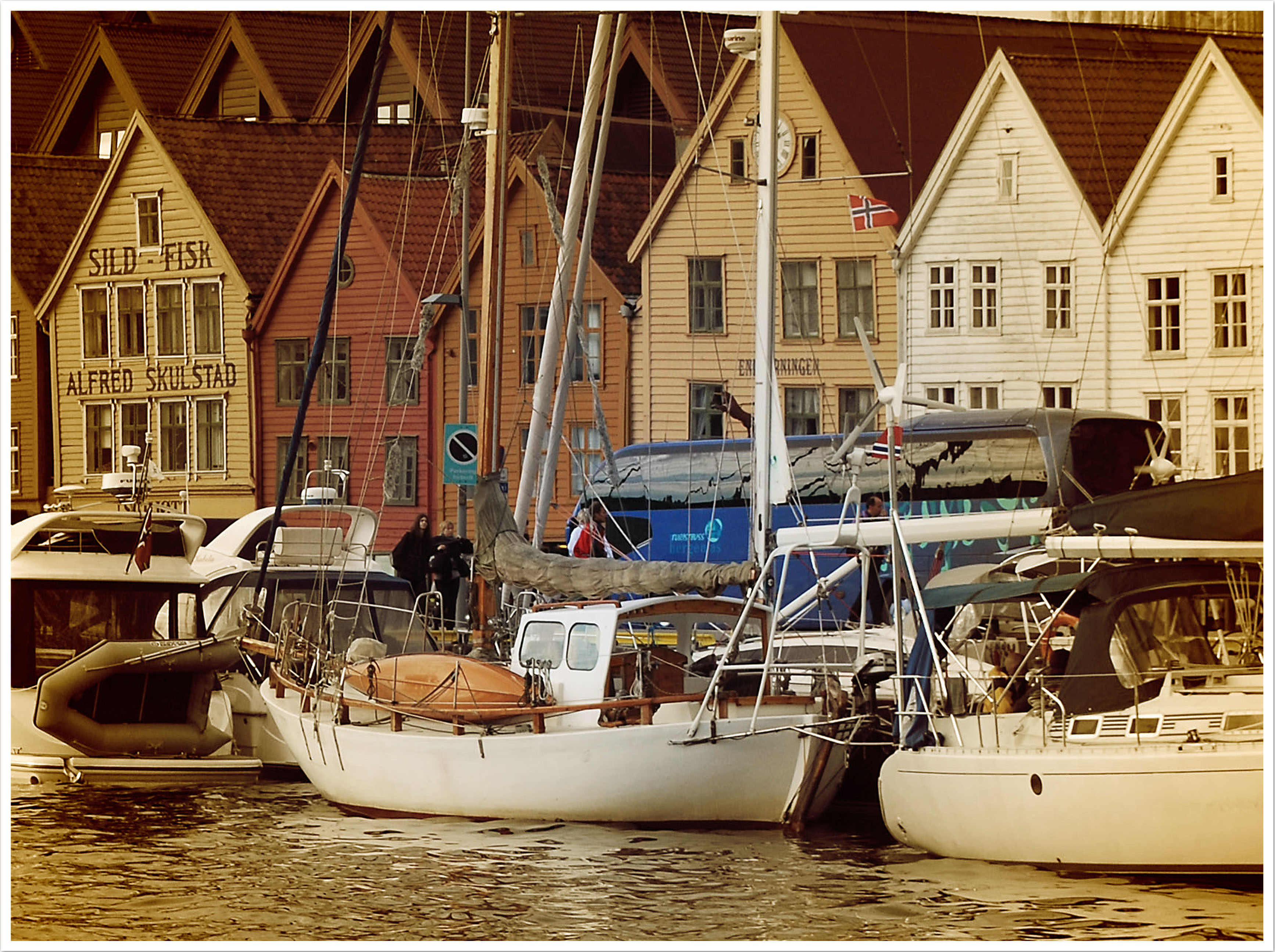 Aber Bergen ist kein Freilichtmuseum . . . im Gegenteil. Im Vergleich zu dem eher gediegenen Oslo wirkt Bergen lauter, alternativer und vielschichtiger. Diesen Eindruck vermitteln die Menschen auf den Straßen und die Cafes, Kneipen und Geschäfte an jeder Ecke. In Bergen stößt man sowohl auf das vornehme Flair einer alten Hansestadt, als auch auf das eher raue einer industriellen Hafenstadt.