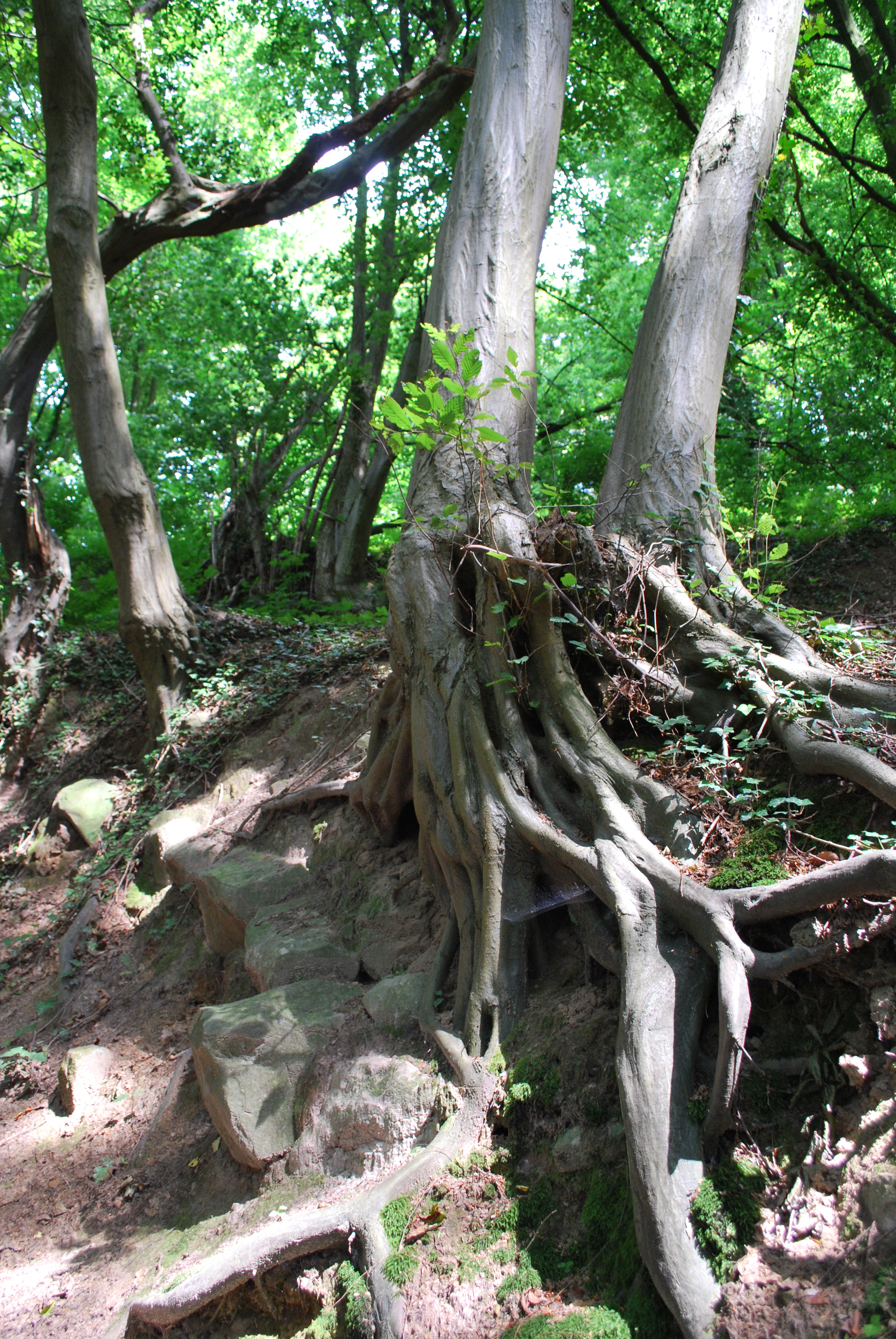 Der Weg durch den Wald ist an sich schon sehr schön. Das was den Hexenpfad aber zu einem richtig guten Familien-Wanderweg macht, sind die Stationen am Wegesrand. Als erstes führt der Weg durch die Hexenküche, eine wilde Felsformation auf der auch noch die Abdrücke des Teufels im Fels zu sehen sein sollen. Als nächstes folgen das Rolandsgrab, der Heidentempel, der Wierturm und – zurück in Tecklenburg – die Burgruine. Zu jeder dieser Stationen gibt es mehr oder weniger wahre Geschichten von Hexen, Rittern und Zauberern zu erzählen.