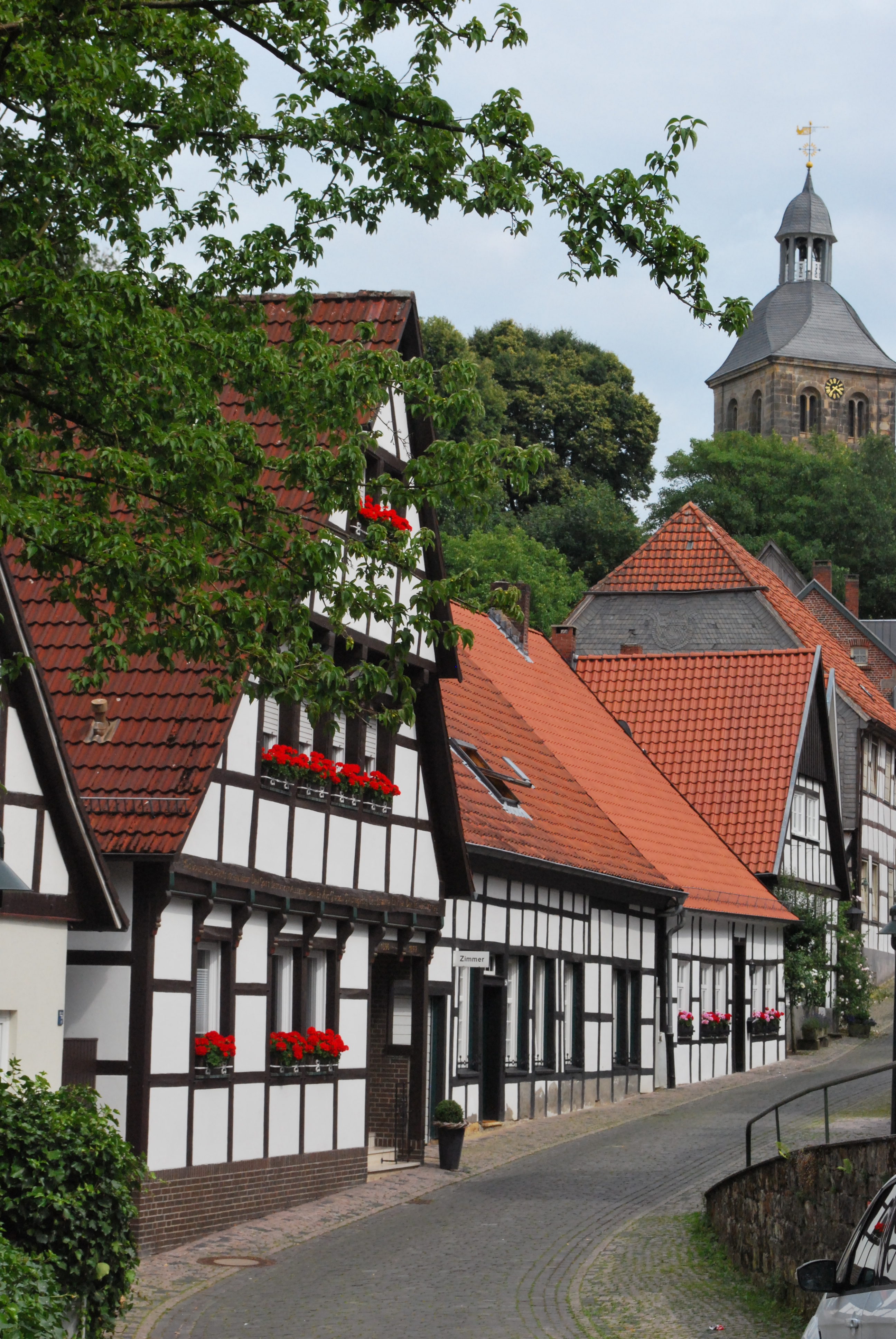 Auf dem Rückweg geht es dann über ein Teilstück des Hermannsweges, dem Fernwanderweg durch den gesamten Teutoburger Wald, zurück nach Tecklenburg. Dort lohnt sich auf jeden Fall noch ein kleiner Rundgang durch die Gassen zwischen den Fachwerkhäusern.